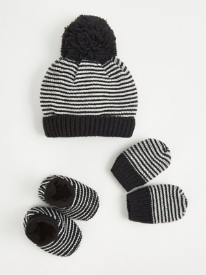 Striped Knitted Bobble Hat Mittens and Booties Set Baby at ASDA