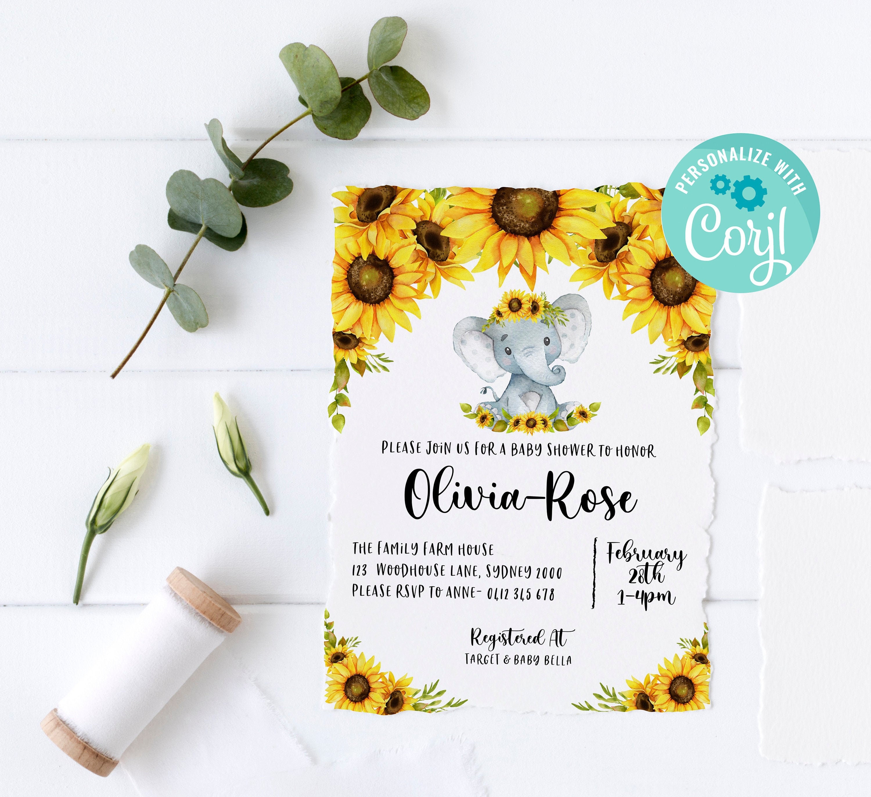 Paper & Party Supplies Sunflower Elephant Decor Sunflower Baby Shower