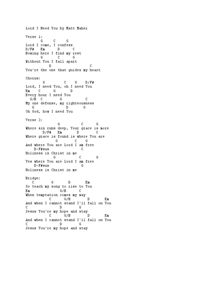 Lord I Need You Chords Grace In Christianity Song Structure