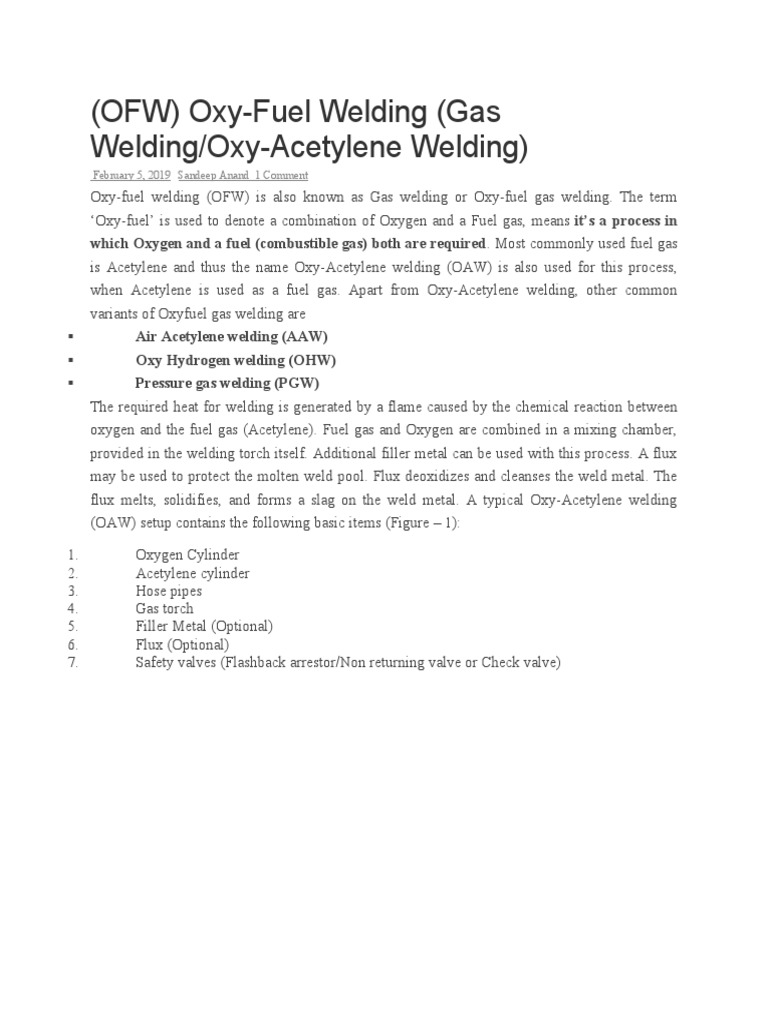 (OFW) OxyFuel Welding (Gas WeldingOxyAcetylene Welding) PDF