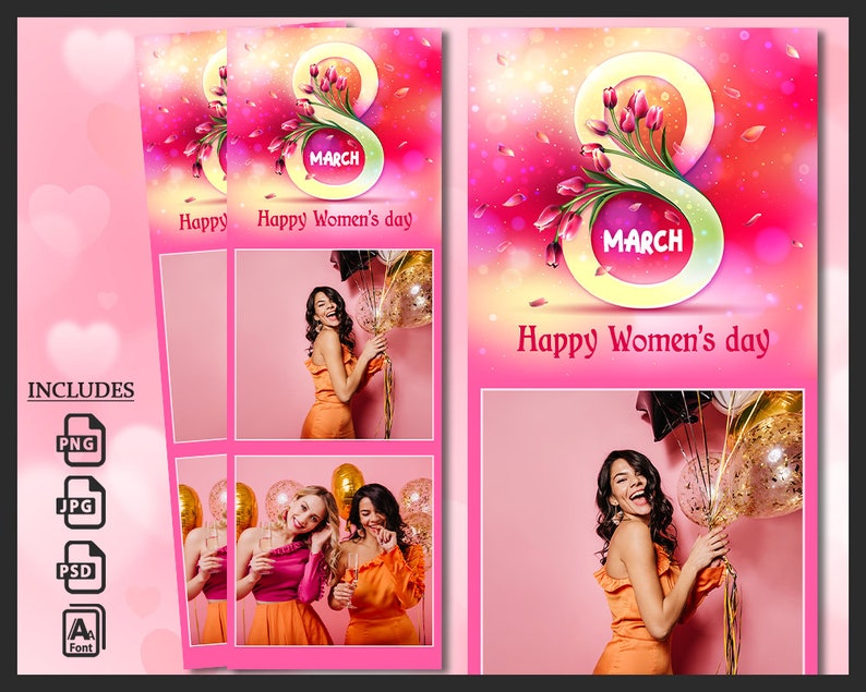 Women's Day Photo Booth Template, Photobooth 8th March Frame, Love, 2x6
