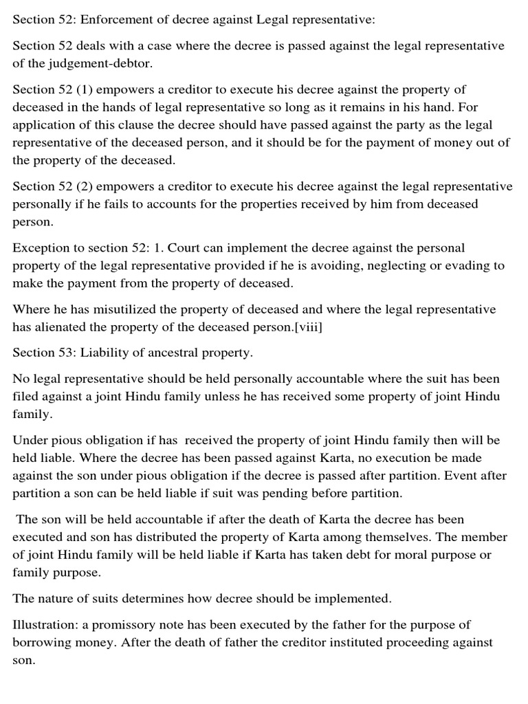 Section 52 of Cpc Lawsuit Judgment (Law)