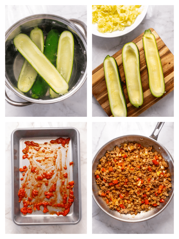 four zucchini boats with meat and cheese on them Zucchini Boat Calories Stuffed zucchini boats are filled with seasoned ground sausage and topped with mozzarella cheese then baked until tender and the cheese is melted. The macronutrient breakdown is 17% carbs, 60% fat, and 23% protein. So easy to make and full of flavor, these stuffed zucchini boats are the perfect. These easy low carb & keto stuffed zucchini boats are low. Zucchini Boat Calories.
