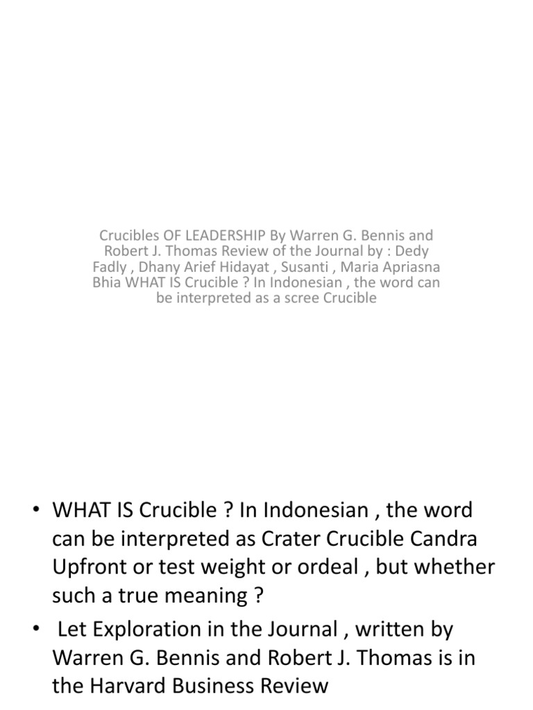 Crucibles of Leadership Bennis and Robert J. Thomas Included with Crucibles Of Leadership Ppt A presentation we collaborated on in our executive mba executive. crucibles of leadership slide show by calvin hill and gilbert delagarza. Crucibles of leadership are intense, challenging experiences that test a leader’s capabilities to their limits. Thomas warren g.bennis & robert j. extraordinary leaders find meaning in— and learn from—the most negative events. Extraordinary leaders find meaning in—and. Crucibles Of Leadership Ppt.