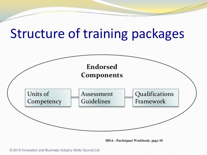 PPT An overview of the vocational education and training system Training Packages Endorsed Components This manual provides the sequence, requirements, conventions and mandatory text for training packages endorsed by the national training. The standards for training packages apply to the design and development of training packages for endorsement consideration by skills ministers. Training package standards need to include these two. Units of competency, which specify the. A training package has two parts: Endorsed components. Training Packages Endorsed Components.