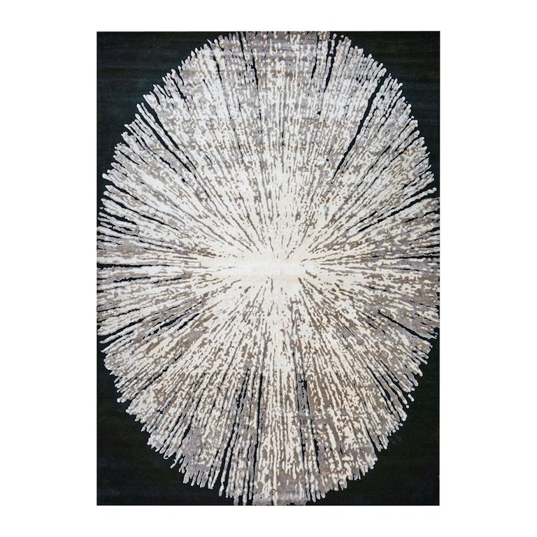 21st Century Modern Wool and Silk 10x14 Black, White, and Grey Handmade