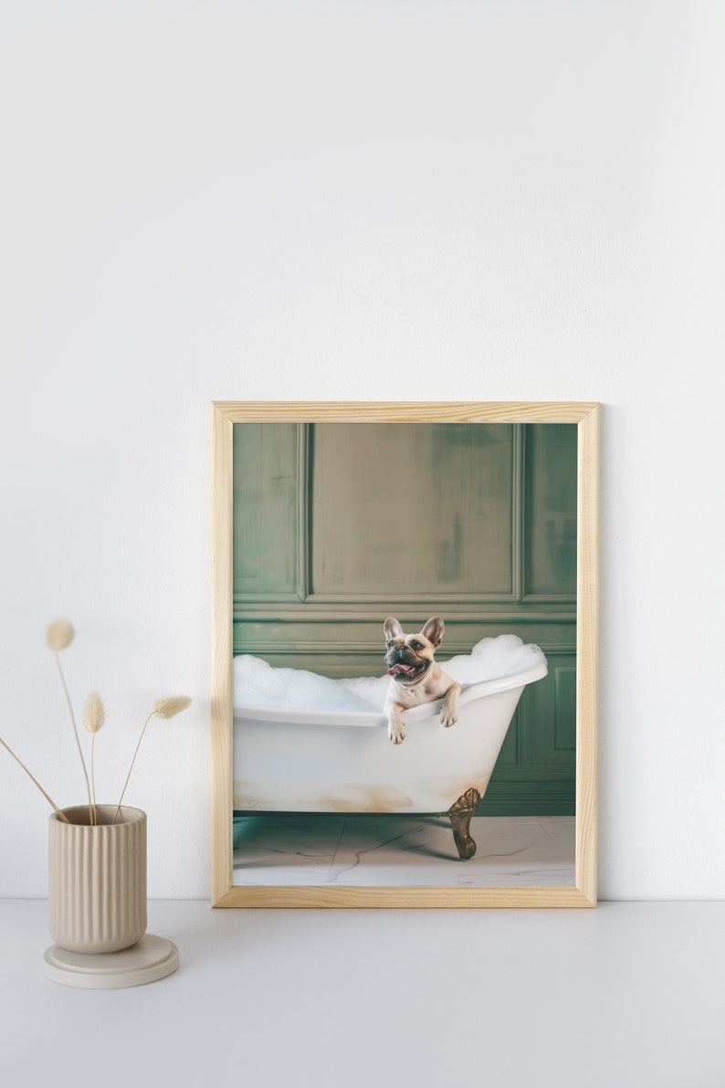 Dog in Bathtub Art Poster, Animal in Bathtub, French Bulldog Bathroom French Bulldog Bathroom Wall Art Check out our french bulldog bathroom decor selection for the very best in unique or custom, handmade pieces from our wall decor shops. Check out our french bulldog bathroom wall art selection for the very best in unique or custom, handmade pieces from our prints shops. French bulldog dog art print poster, wall art painting decor, puppy pop art home. French Bulldog Bathroom Wall Art.