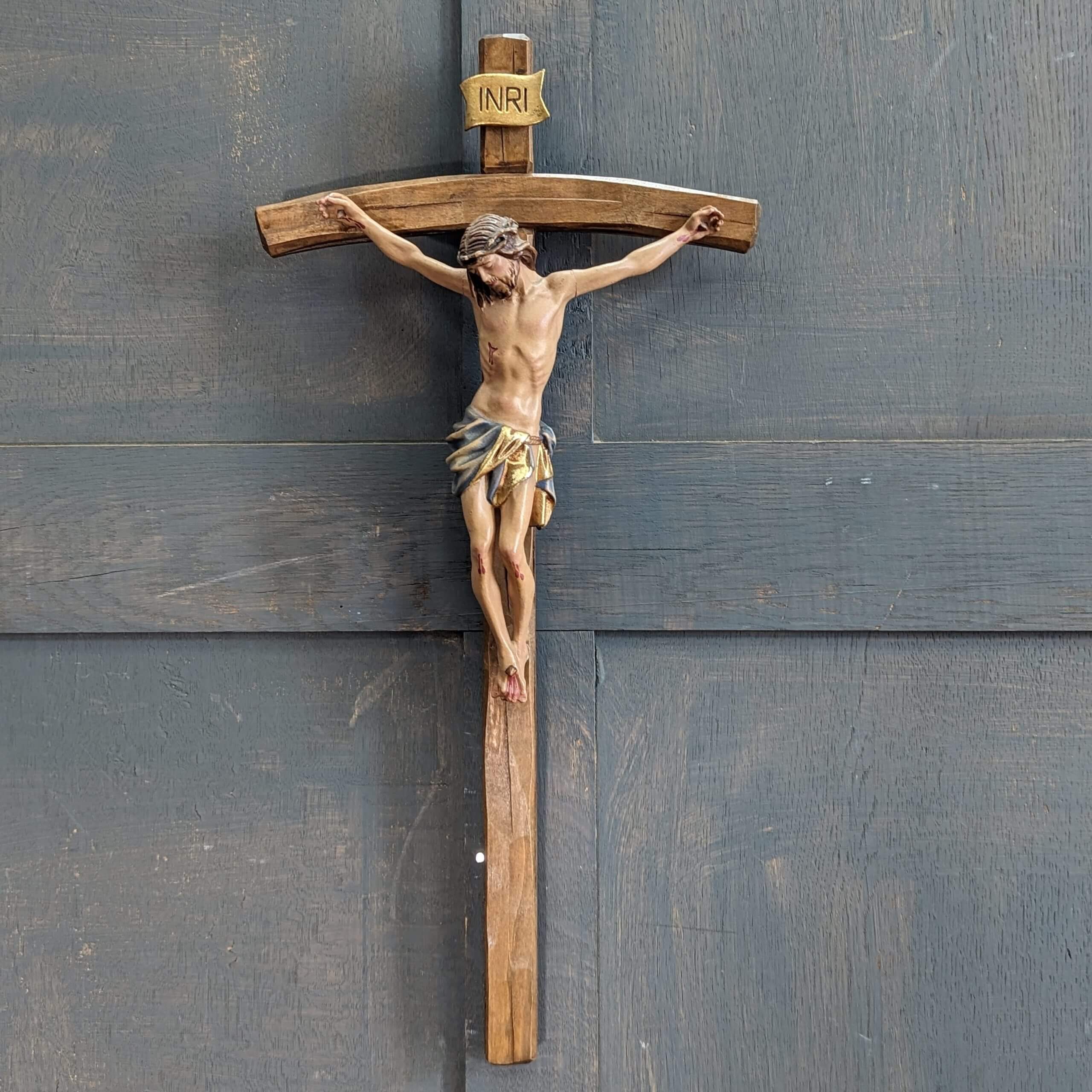 Contemporary Carved & Painted Wooden Wall Crucifix from Our Lady Star