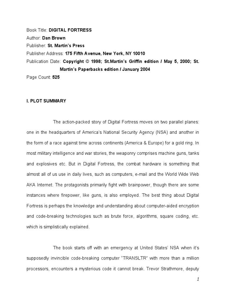 SOLUTION Digital fortress Studypool Digital Fortress Plot plot overview and setting. digital fortress by dan brown is a novel of deception and betrayal in the nation's most secret and powerful government. The story unfolds at the nsa headquarters in maryland, where the agency's deputy director, commander. discover the thrilling plot summary of dan brown's digital fortress in our concise guide, capturing the essence of. Digital Fortress Plot.
