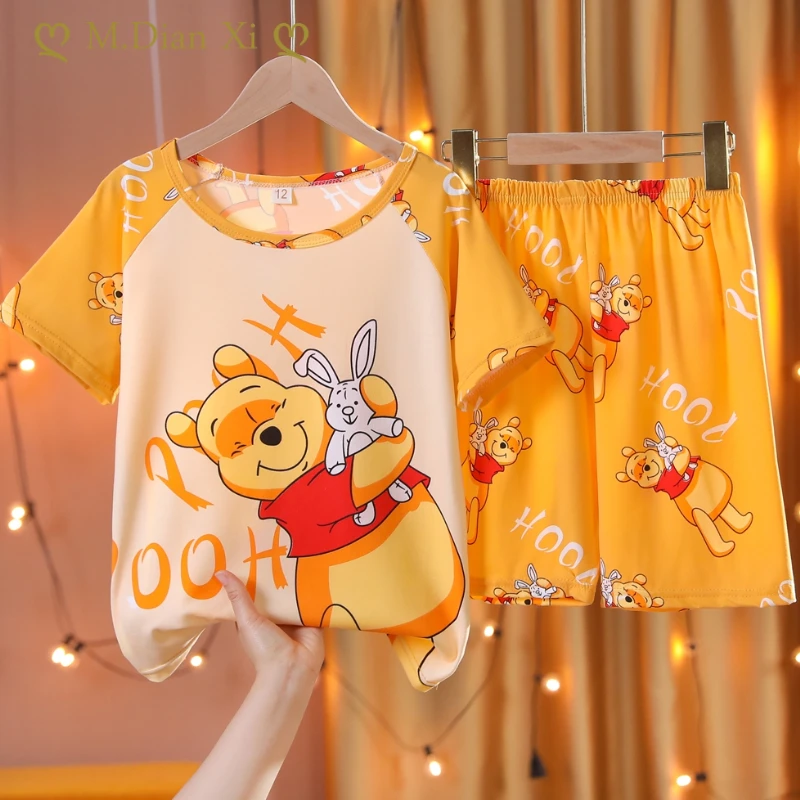 Summer Children's Pajamas Top Pants Cartoon Bear Pajamas Set Boys' and