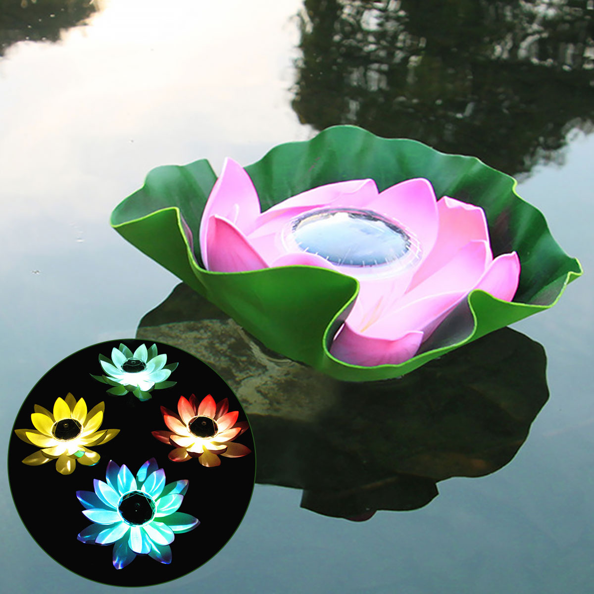 Solar Powered Lotus Lamp Water Floating Lamp LED Flower Light IP65