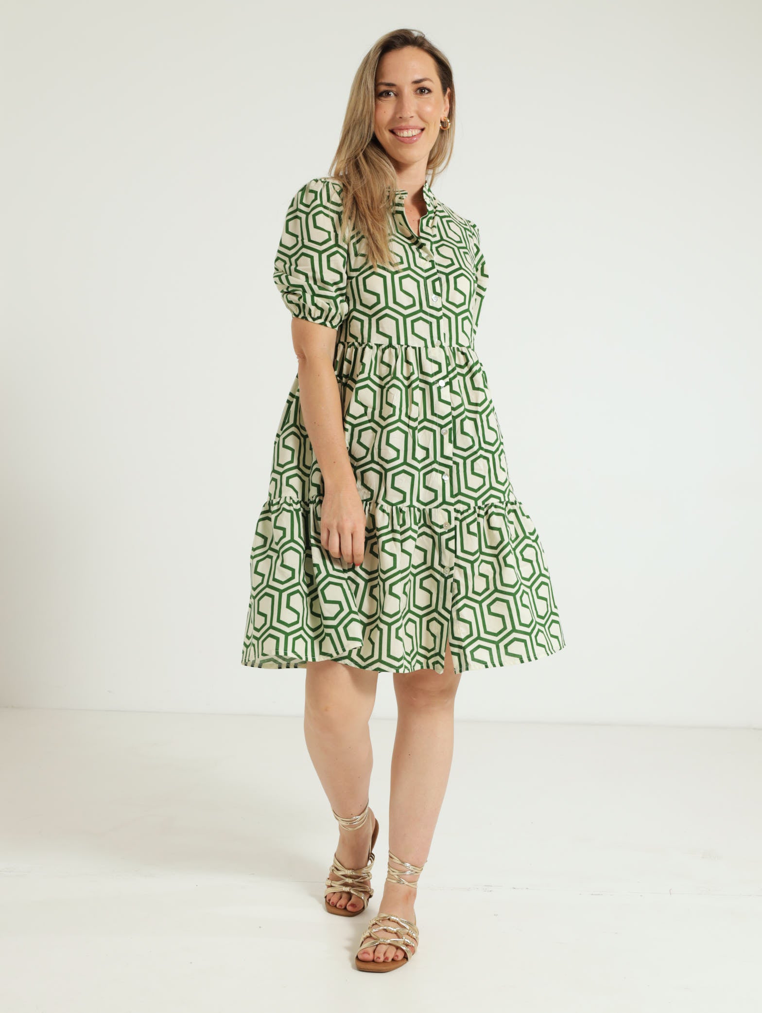 Ladies 3/4 Sleeve Tiered Button Through Geo Print Dress Edgars Namibia
