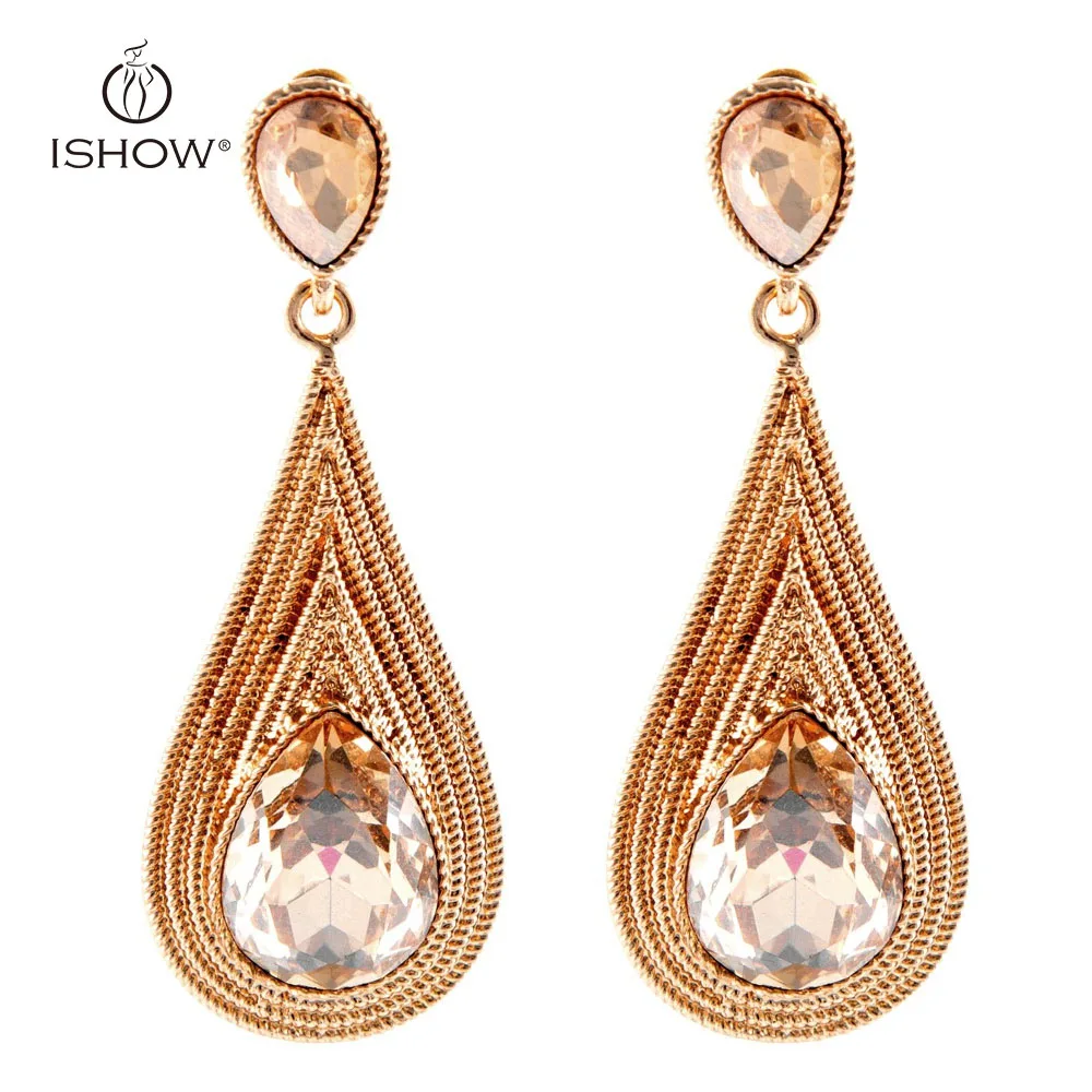 New Water Drop earrings Women Crystal Champagne color Multilayer chain