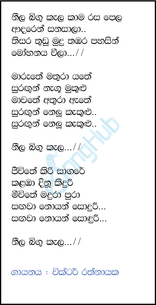 Neela Bingu Kala (Sparsha) Song Sinhala Lyrics