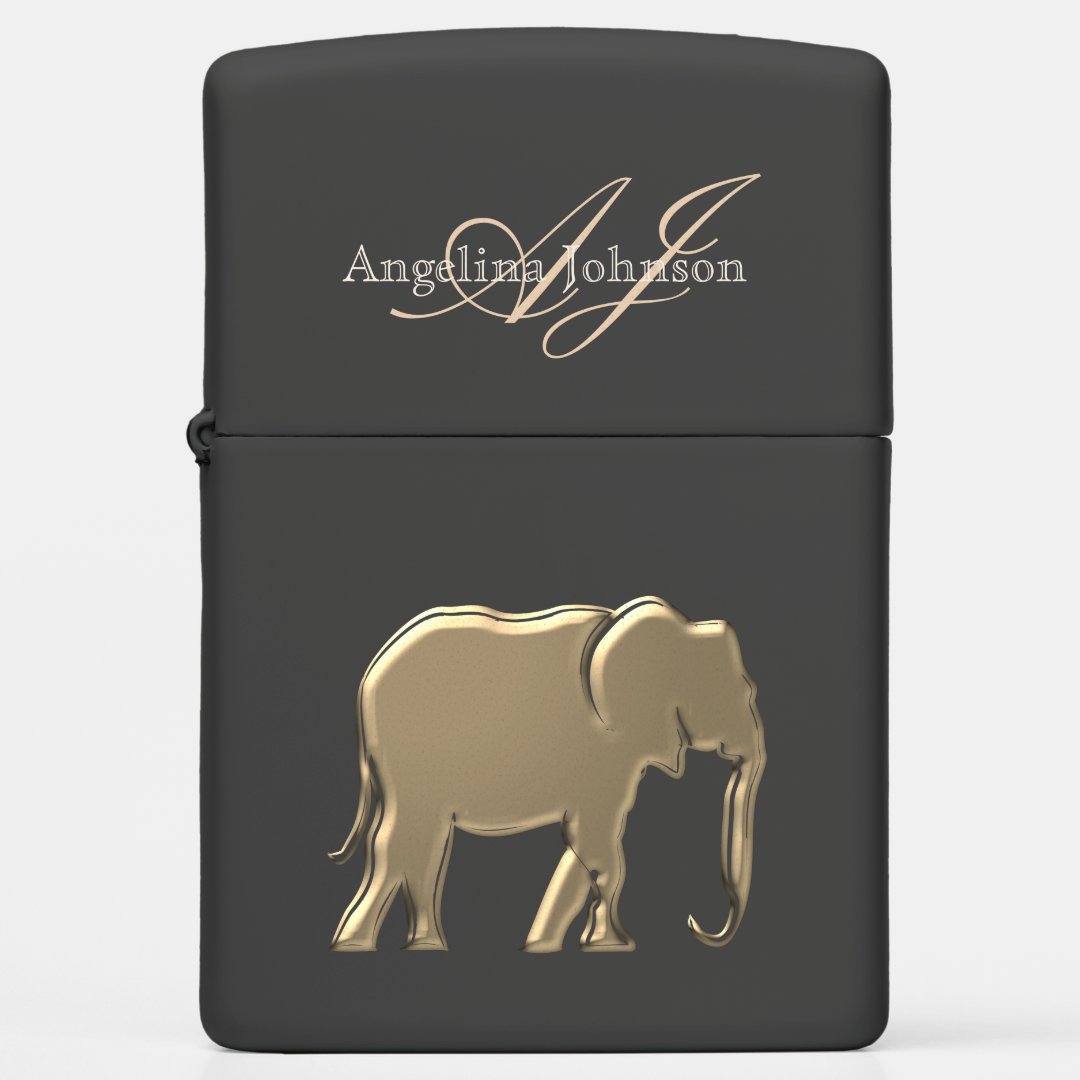 Black and Gold Elephant , Monogram Zippo Lighter Zazzle