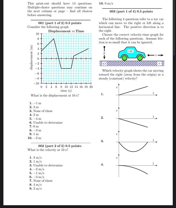 Solved Which velocity graph shows the car moving toward the