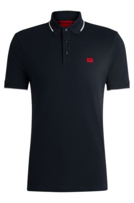 HUGO Cottonpiqué slimfit polo shirt with red logo label