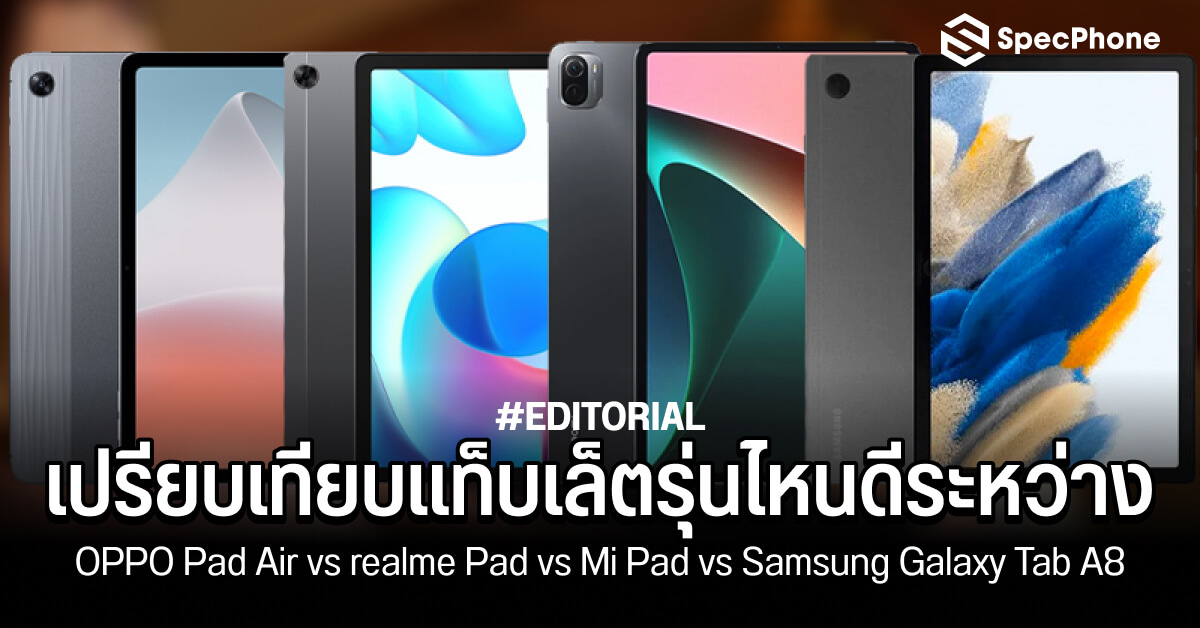 เทียบ OPPO Pad Air vs realme Pad vs Mi Pad vs Samsung Galaxy Tab A8