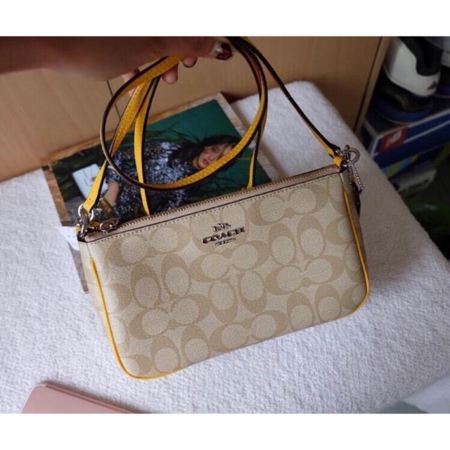 SpreeSuki Coach Top Handle Pouch Light Khaki / Canary Yellow / Silver Coach F58321 Top Handle Pouch Crossgrain leather and signature coated canvas. Find helpful customer reviews and review ratings for coach signature coated canvas top handle crossbody f58321 (khaki/saddle) at. Shop on the coach outlet official site. Has small 6” strap attached for carrying or 21.5” removable strap for crossbody. Become a coach insider to receive exclusive access to new styles, special offers and more. Find. Coach F58321 Top Handle Pouch.