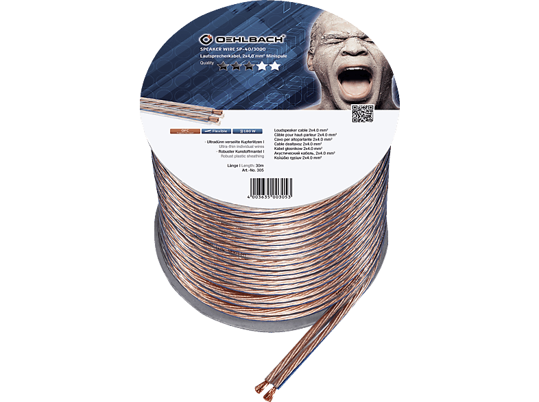 OEHLBACH Speaker Wire SP40 Lautsprecherkabel, Transparent/Kupfer