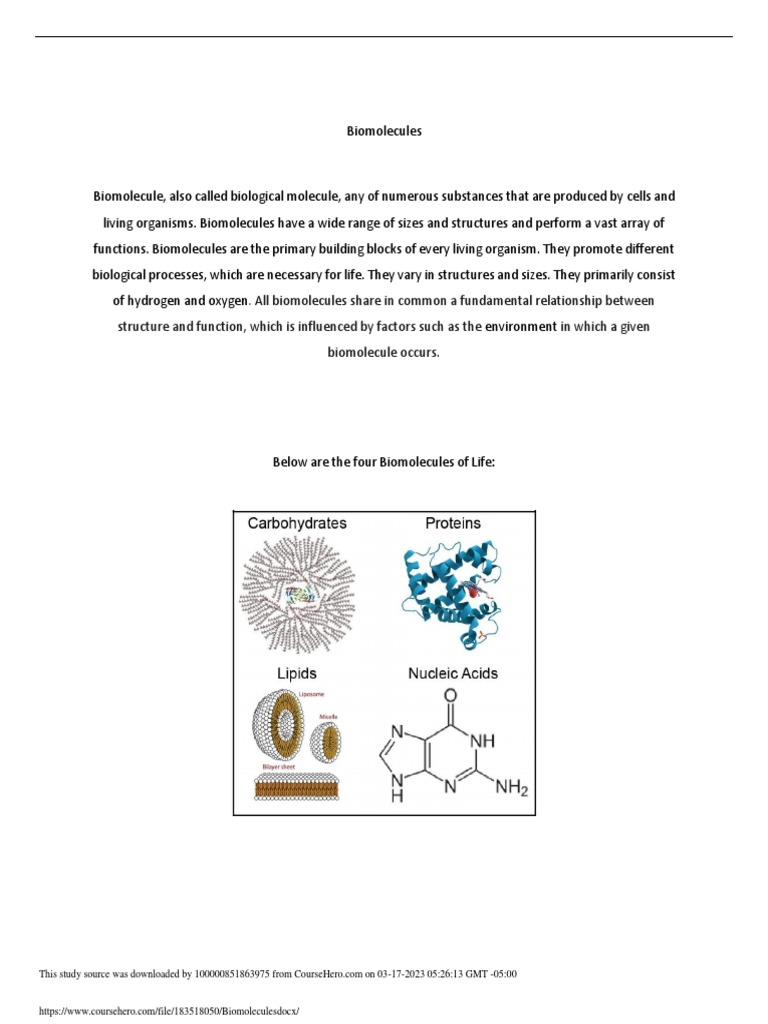 Biomolecules Cheat Sheet Biomolecules Pdf • to understand and be able to demonstrate knowledge of key. • to recognize different classifications of biomolecules. A pdf book that covers the basic concepts and reactions of biomolecules, such as carbohydrates, lipids, proteins, and nucleic acids. Monomers are joined by a chemical bond in a condensation reaction. Polymers are molecules made from many monomers joined together. Why is. Biomolecules Pdf.