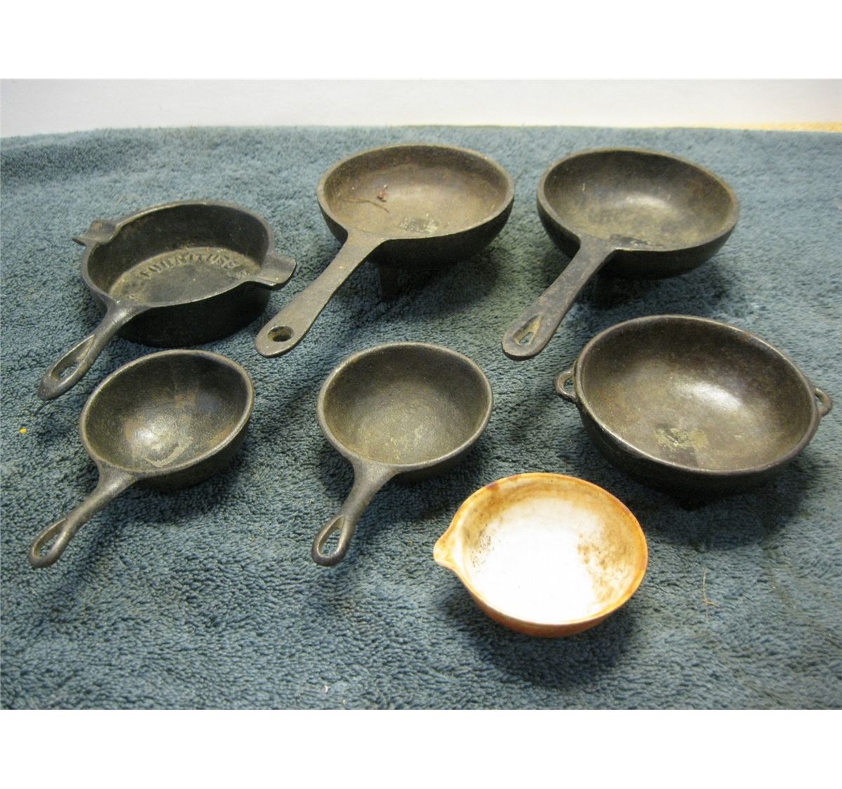 6 Misc. Vintage Small Melting Cast Iron Pots,