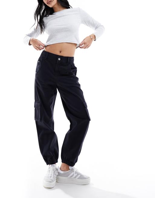 Bershka cuffed cargo pants in black ASOS