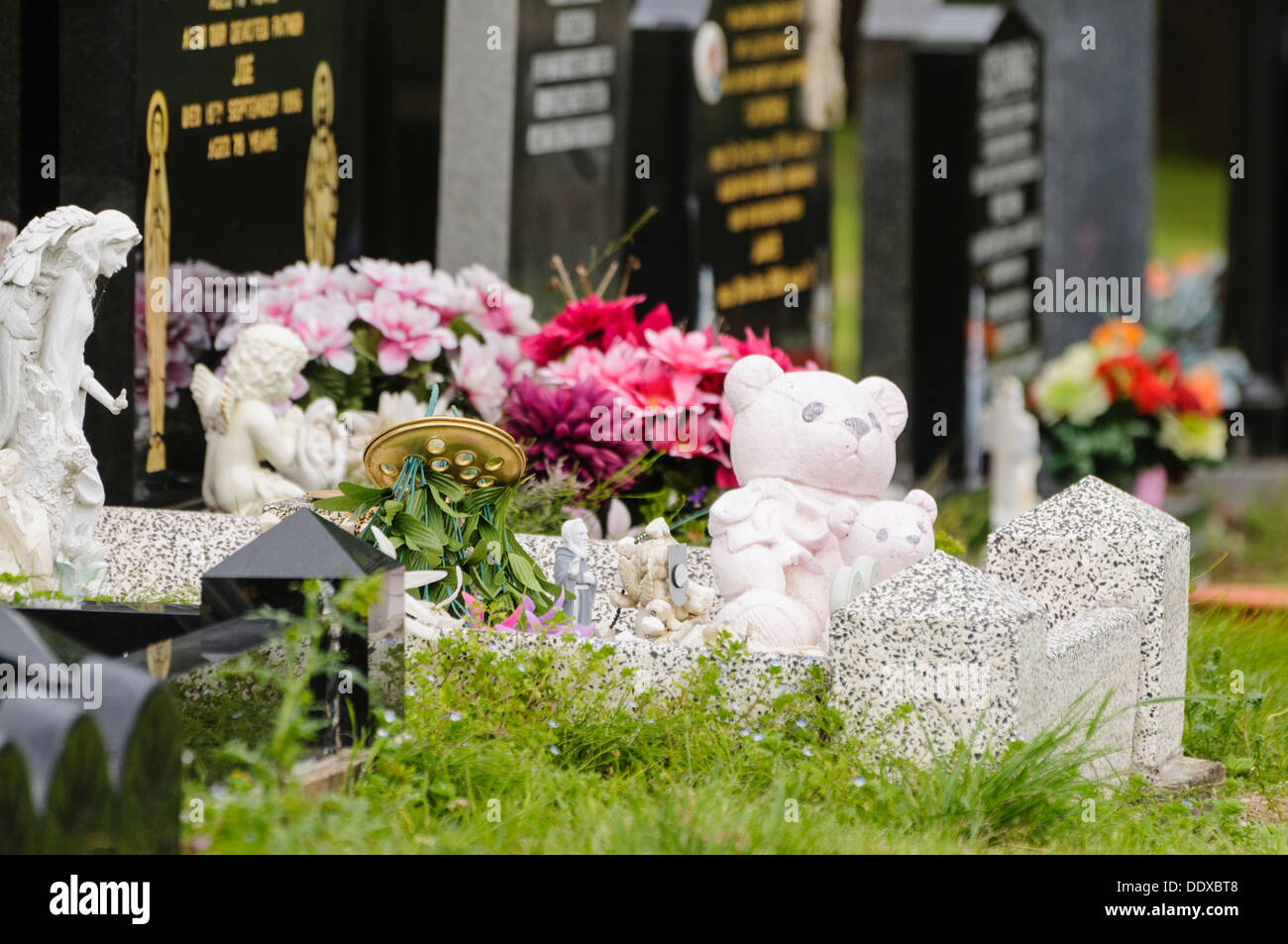 Teddybear on a child's grave Stock Photo Alamy Flowers For A Child S Grave In cemeteries across cultures, flower arrangements left at grave sites represent a myriad of sentiments, from respect and remembrance to love and sorrow. Selecting the right flowers for a cemetery can be a meaningful way to honor and remember loved ones. Hearts, teddys and comforting floral displays. For instance, roses symbolize love and grief—red roses for deep love, while white. Flowers For A Child S Grave.