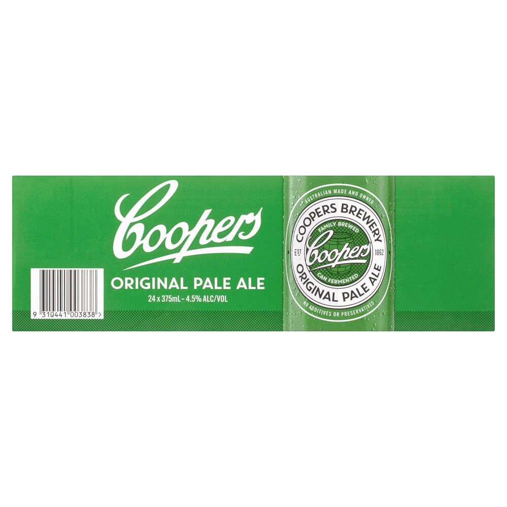 Coopers Original Pale Ale 12 x 375ml Case Buy Online Now! Coopers Pale Ale Standard Drinks Coopers original pale ale is a refreshingly smooth, balanced and easy drinking ale that makes others pale by comparison. Coopers brewery is the largest australian owned brewery. Their original pale ale is a great testament to their consistency and tradition. This pale ale has a medium aroma of malt, with hints of floral, grassy hops and mild, woody yeast notes.. Coopers Pale Ale Standard Drinks.