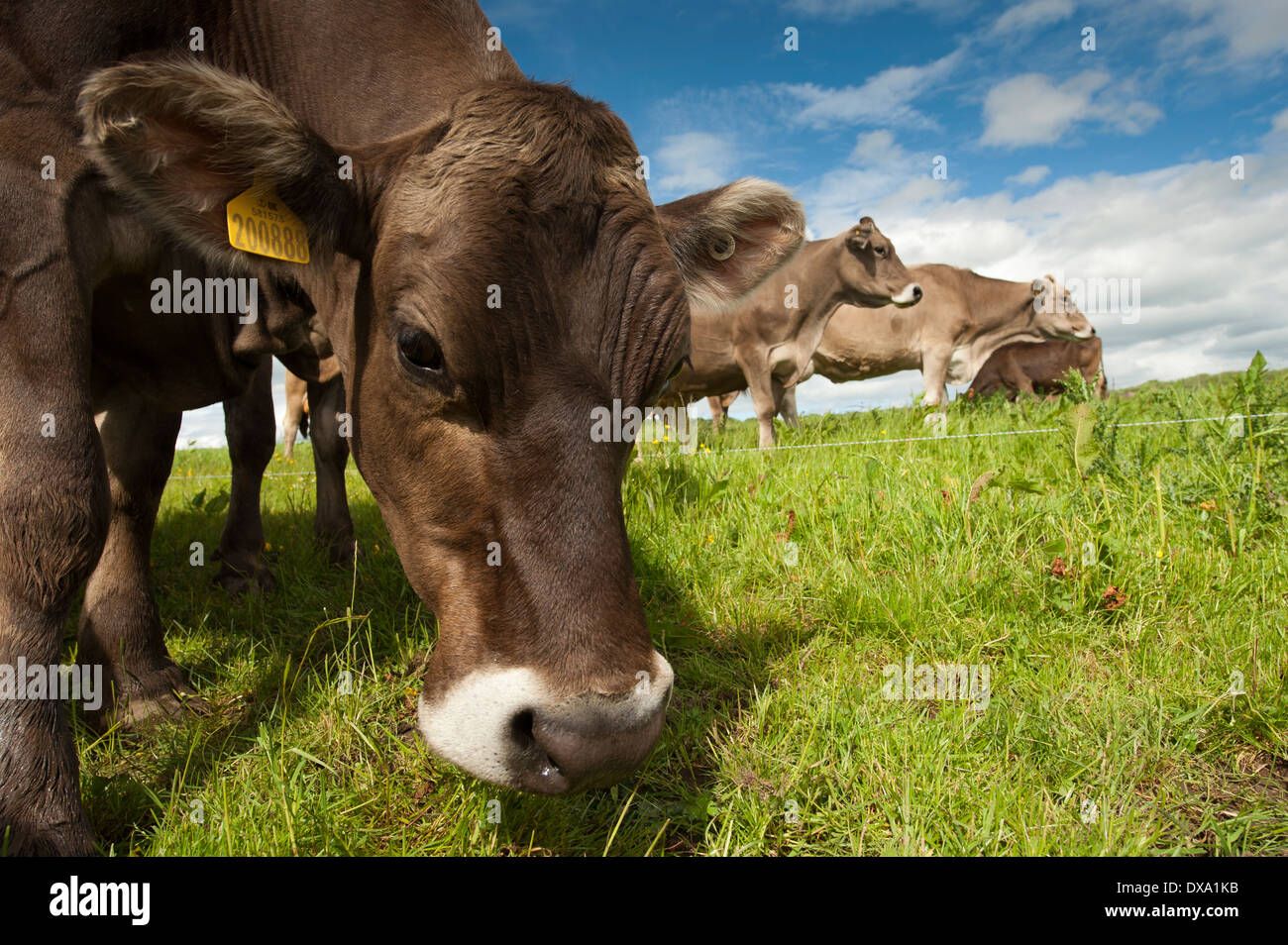Brown Swiss cattle grazing in lush pasture. Dumfries, Scotland Stock Photo Alamy
