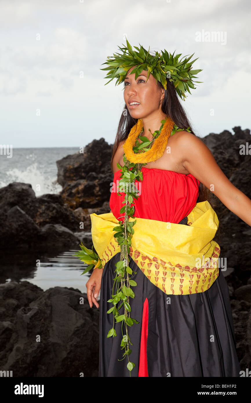 Hawaiianische Mädchen tragen traditionelle HulaKleidung Stockfotografie Alamy