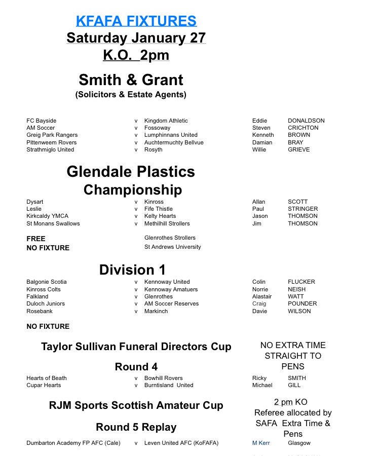 Scottish Amateur FA (ScotAmFA) / Twitter Kingdom Of Fife Afa Fixtures The current season of the kingdom of fife afa began in august 2023. View the fixtures, results, league tables and team details for all divisions of the kingdom of fife afa which has 1 teams playing. Any teams looking for a keeper? D9 scaffolding ltd south of. 2 pm smith & grant (solicitors & estate agents) premier balgonie. North road. Kingdom Of Fife Afa Fixtures.