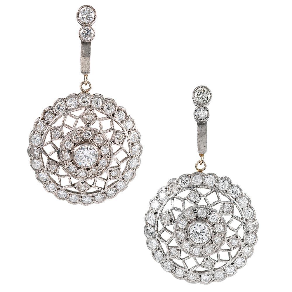 Extra Fine Diamond "Disco Ball" Platinum Earrings at 1stdibs