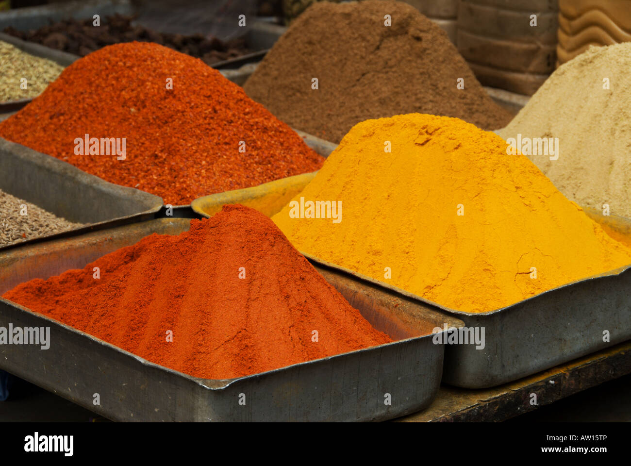 Indian Spices in Trays Stock Photo Alamy