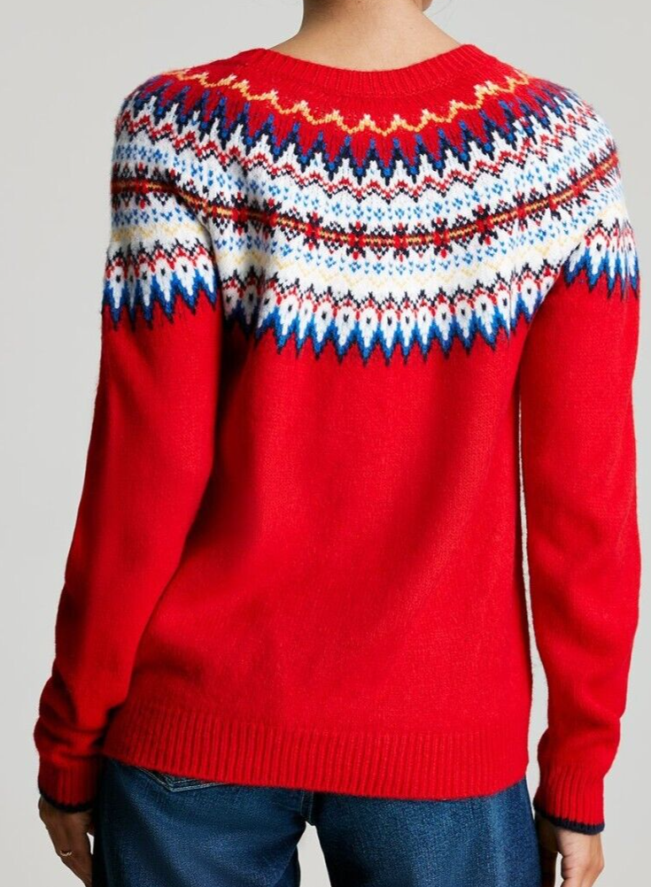 Joules Womens Andrea Red Wool Blend Fair Isle Jumper UK6 BNWT RRP £79.