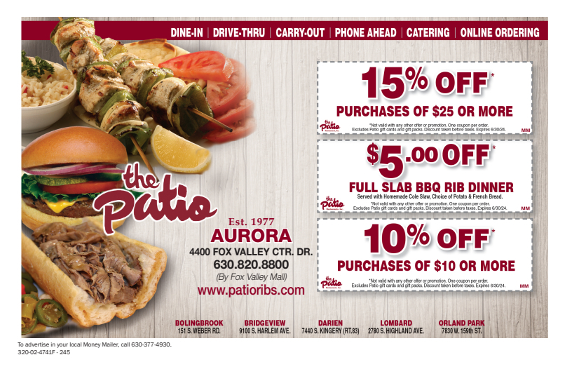 The Patio Coupons & Offers Money Mailer Coupons in Orland Park, IL