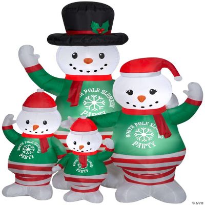 Gemmy Christmas Airblown Inflatable Pajama Snowman Family Scene 7 ft