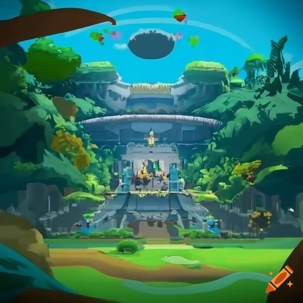 Pokemon unite city map with jungle and ruins on Craiyon