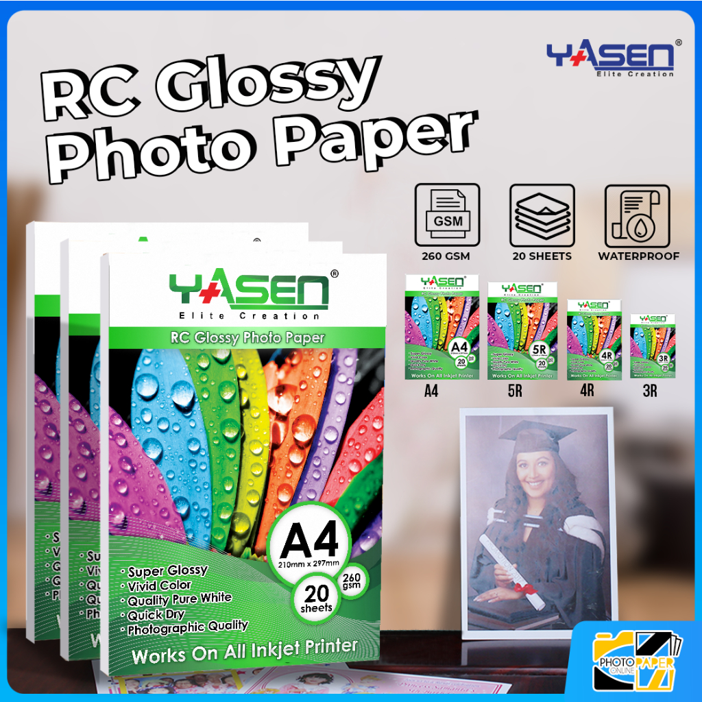 YASEN RC Glossy Photo Paper 260gsm (A4 / 5R / 4R / 3R) Size Resin