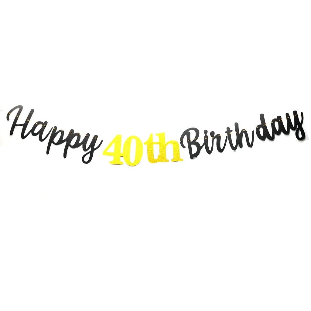 Happy 40th Birthday Banner Decoration, Black and Gold Happy 40th