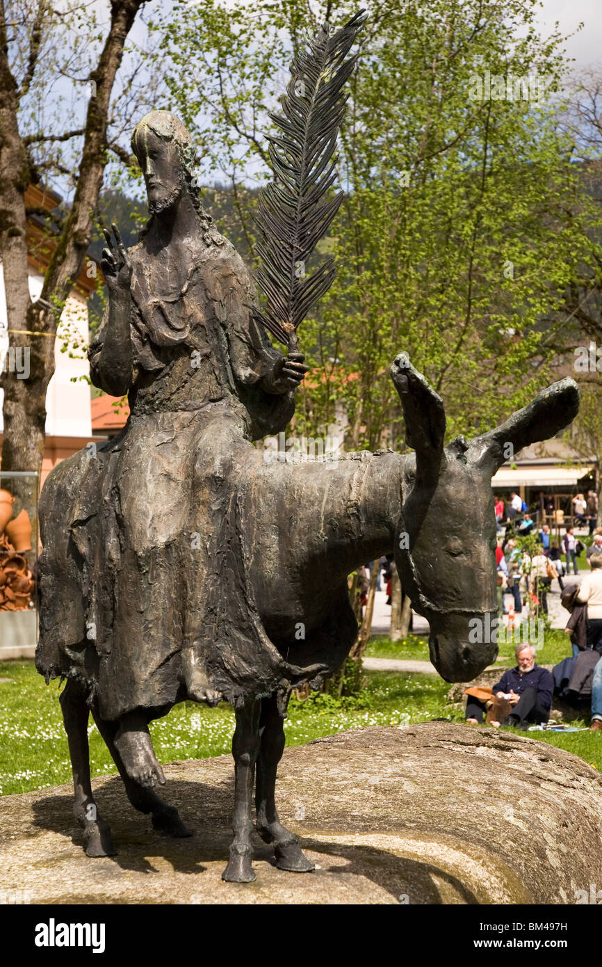A statue of Jesus Christ entering Jerusalem stands outside of the