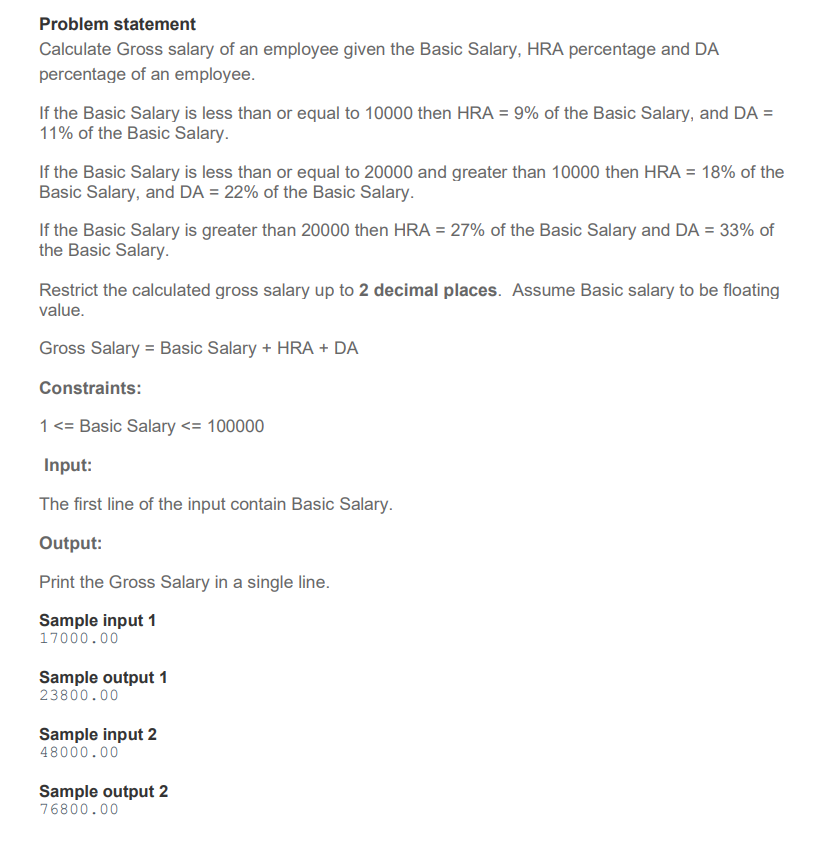 Solved Problem statement Calculate Gross salary of an