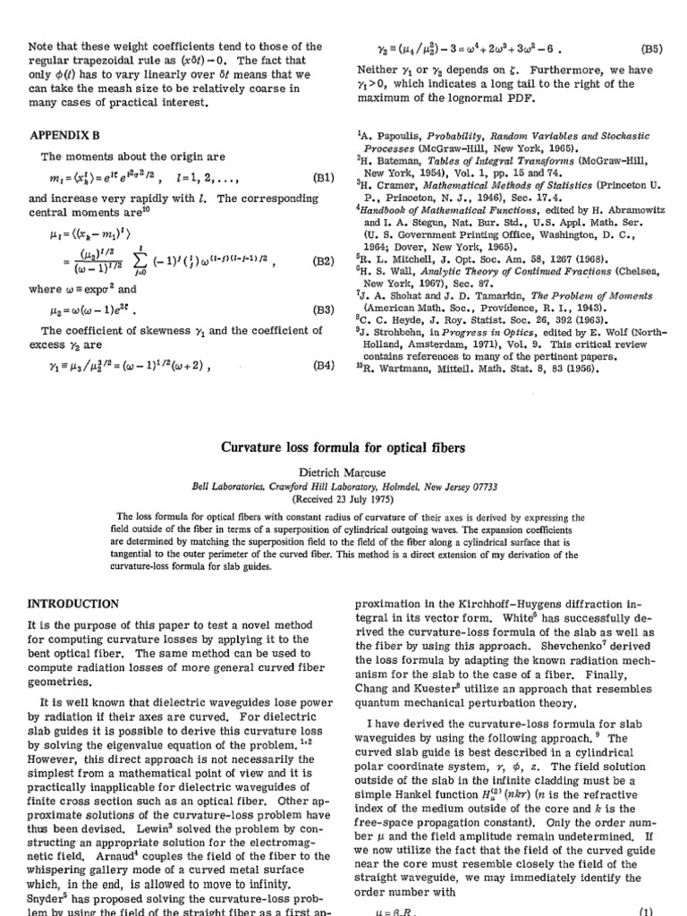 Marcuse, Dietrich, 1976, Curvature Loss Formula for Optical Fibers