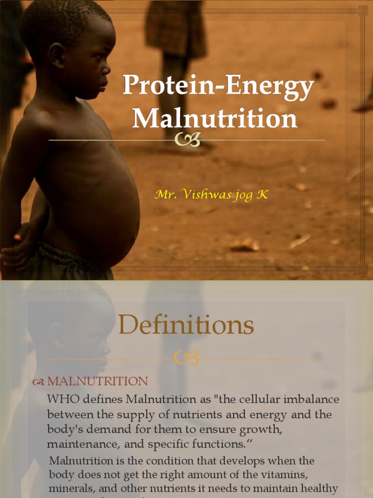 PPT PROTEIN ENERGY MALNUTRITION PowerPoint Presentation, free Protein Energy Malnutrition Also Called Malnutrition refers to deficiencies, excesses, or imbalances in a person’s intake of energy and/or nutrients. Protein Energy Malnutrition Also Called.