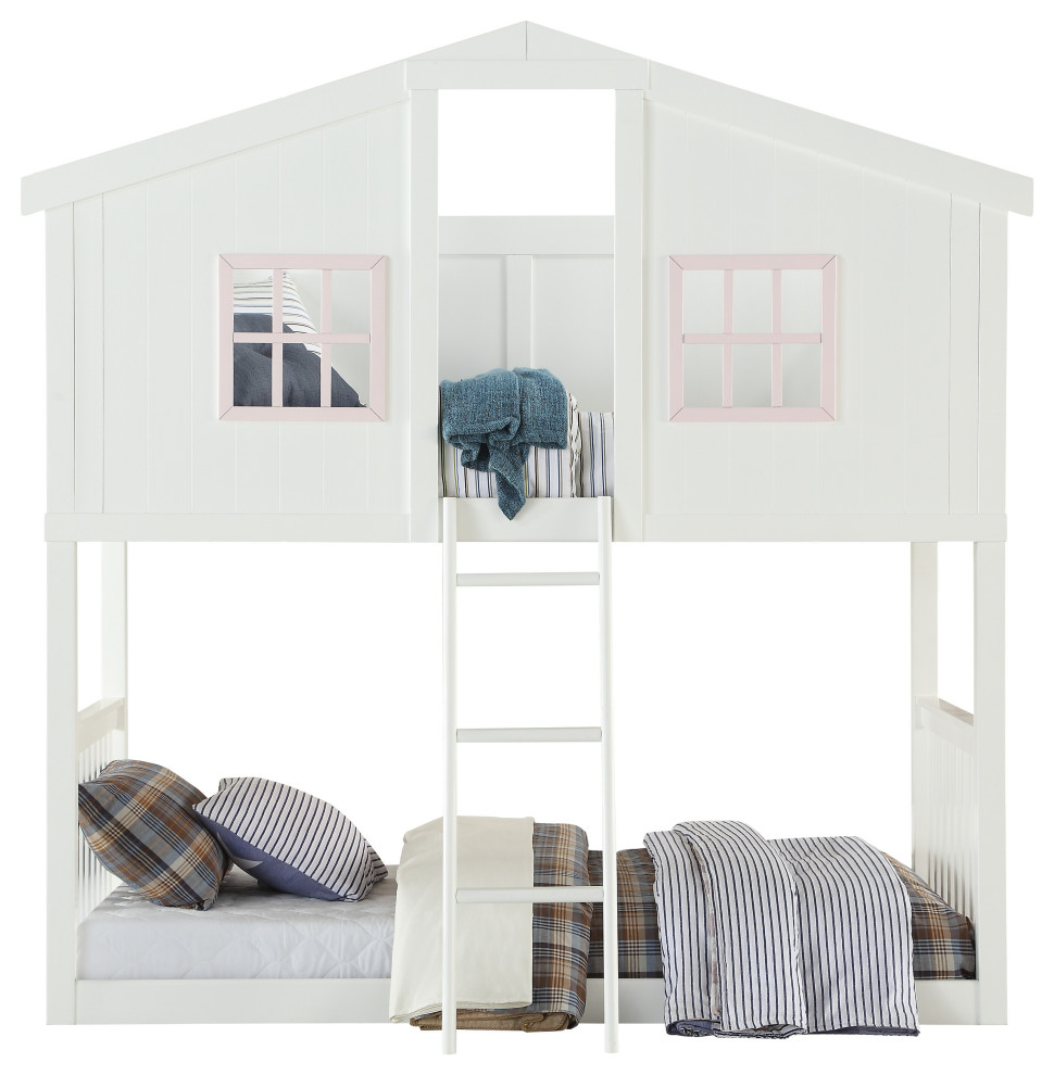Twin Over Twin Bunk Bed with Trundle, House Bunk Bed Frame with Roof Rohan Cottage White And Pink Twin Over Bunk Bed 4,5/5 (1.543) Crafted to inspire sweet dreams. Sleeping in style never looked so good with the acme rohan cottage bunk bed. Made of durable pine wood, this white and pink bunk bed. Give your children a space of their own with the. Find the perfect bunk bed at cymax. Order online acme rohan cottage twin over twin bunk bed. Rohan Cottage White And Pink Twin Over Bunk Bed.