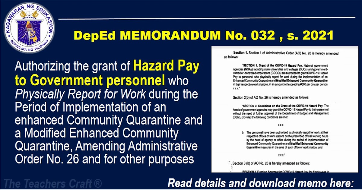 HAZARD PAY TO GOV'T PERSONNEL 2021 (DM NO. 032, S. 2021) The Teacher