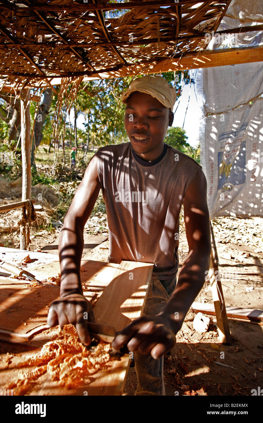 A maker working in an outdoor furniture factory in rural