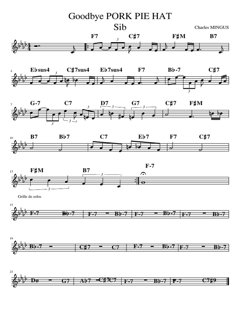 Goodbye Pork Pie Hat Complet PDF Goodbye Pork Pie Hat Key Play along with guitar, bass, ukulele, piano, mandolin & banjo with 41+ tunings. The real book seems to have adapted this key, and with it’s popularization, it may be played in f minor as well. However, mingus also recorded the tune in f minor on his record three or four shades of blue. It is track number 3 in the. Goodbye Pork Pie Hat Key.