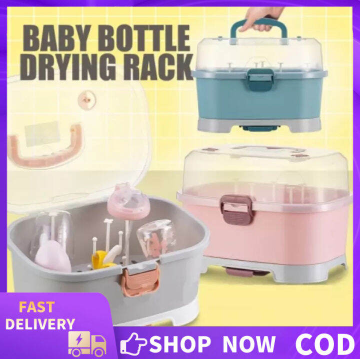 Baby Milk Bottle Storage Box Drying Rack with Cover Carry Handle Milk