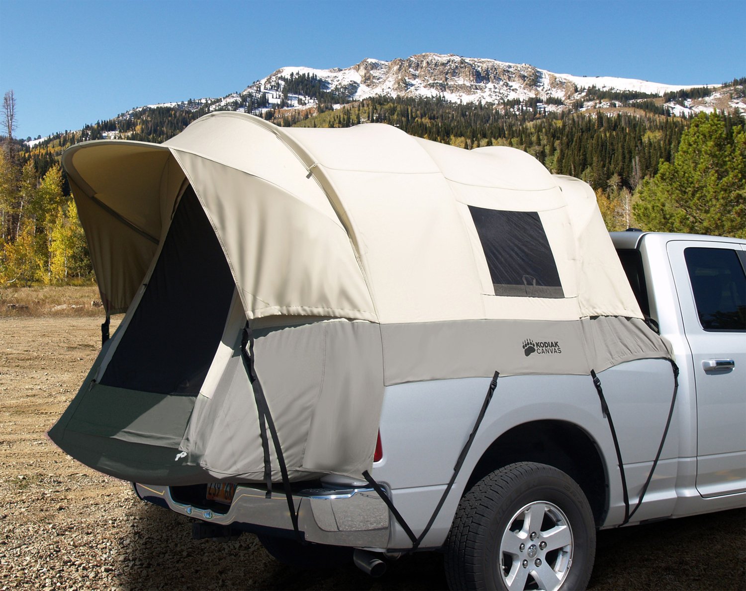 Truck Kodiak Canvas Tent Get the renowned quality of a kodiak canvas tent for your pick up truck. Keep off the ground, high and dry, and away from the critters. Get the renowned quality of a kodiak canvas tent for your pickup truck. Pitch your tent anywhere your truck goes. The kodiak canvas truck bed tent is durable and can withstand years of use. Truck Kodiak Canvas Tent.